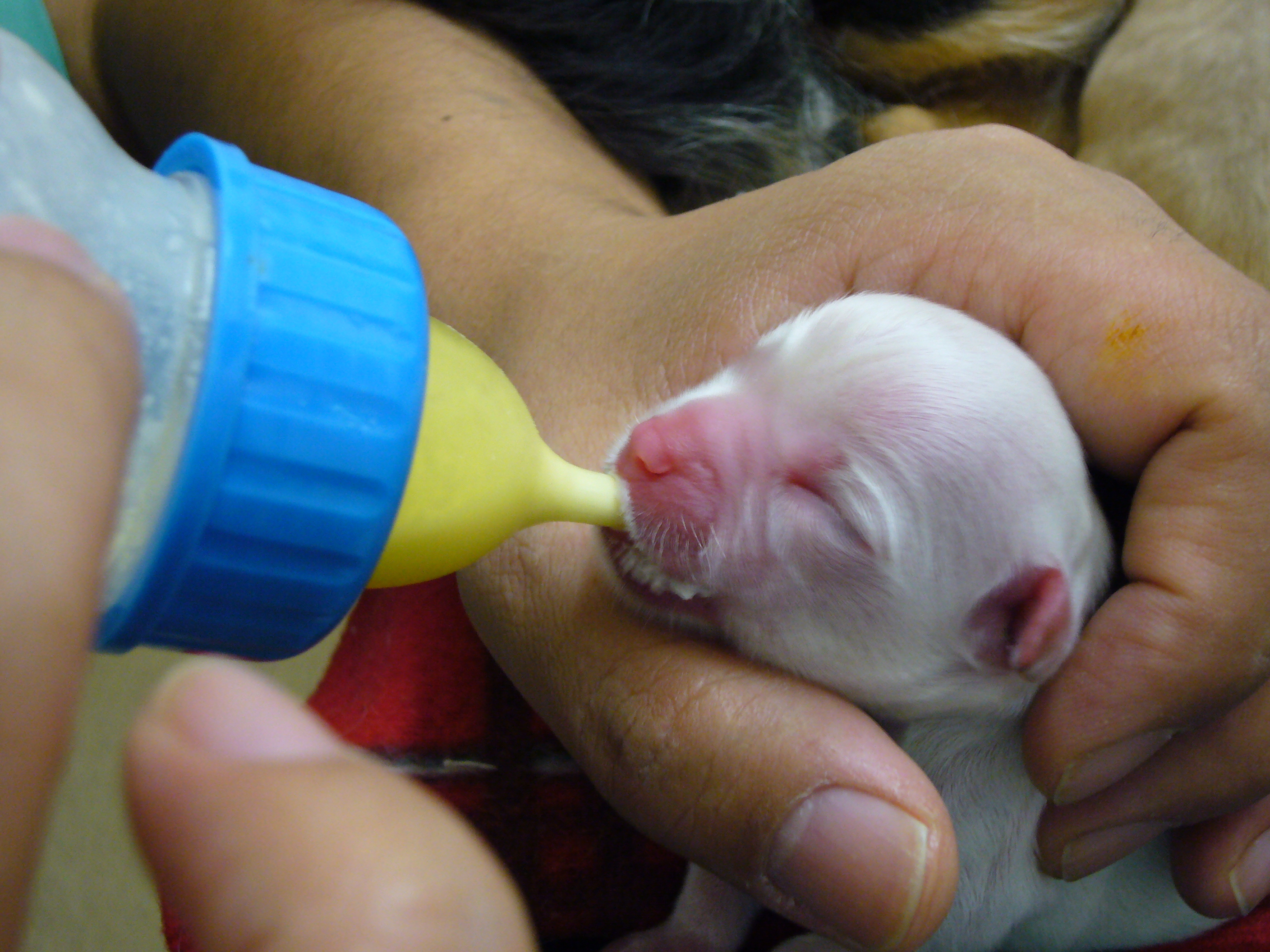 飼い主さんに迎えに来てもらって、おチビちゃんたち 初めての哺乳ビンからのミルク