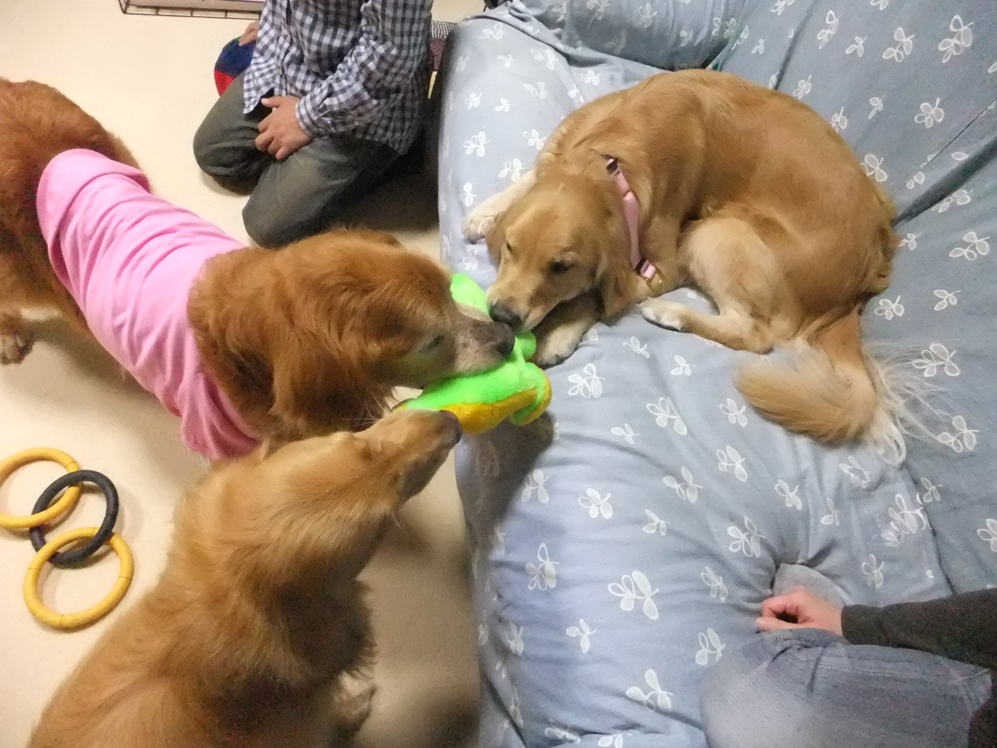みんなで おもちゃの引っ張りっこをしていました