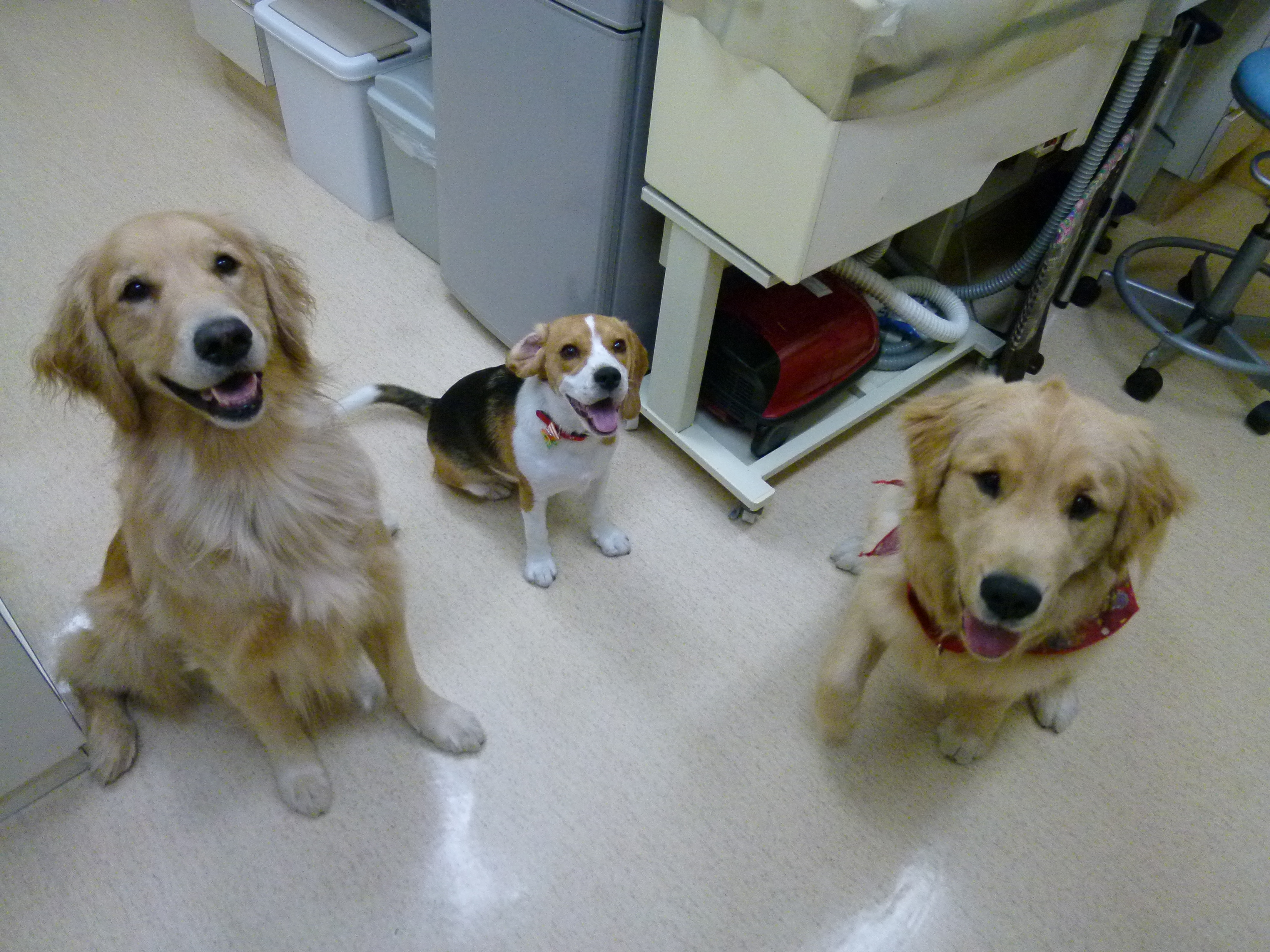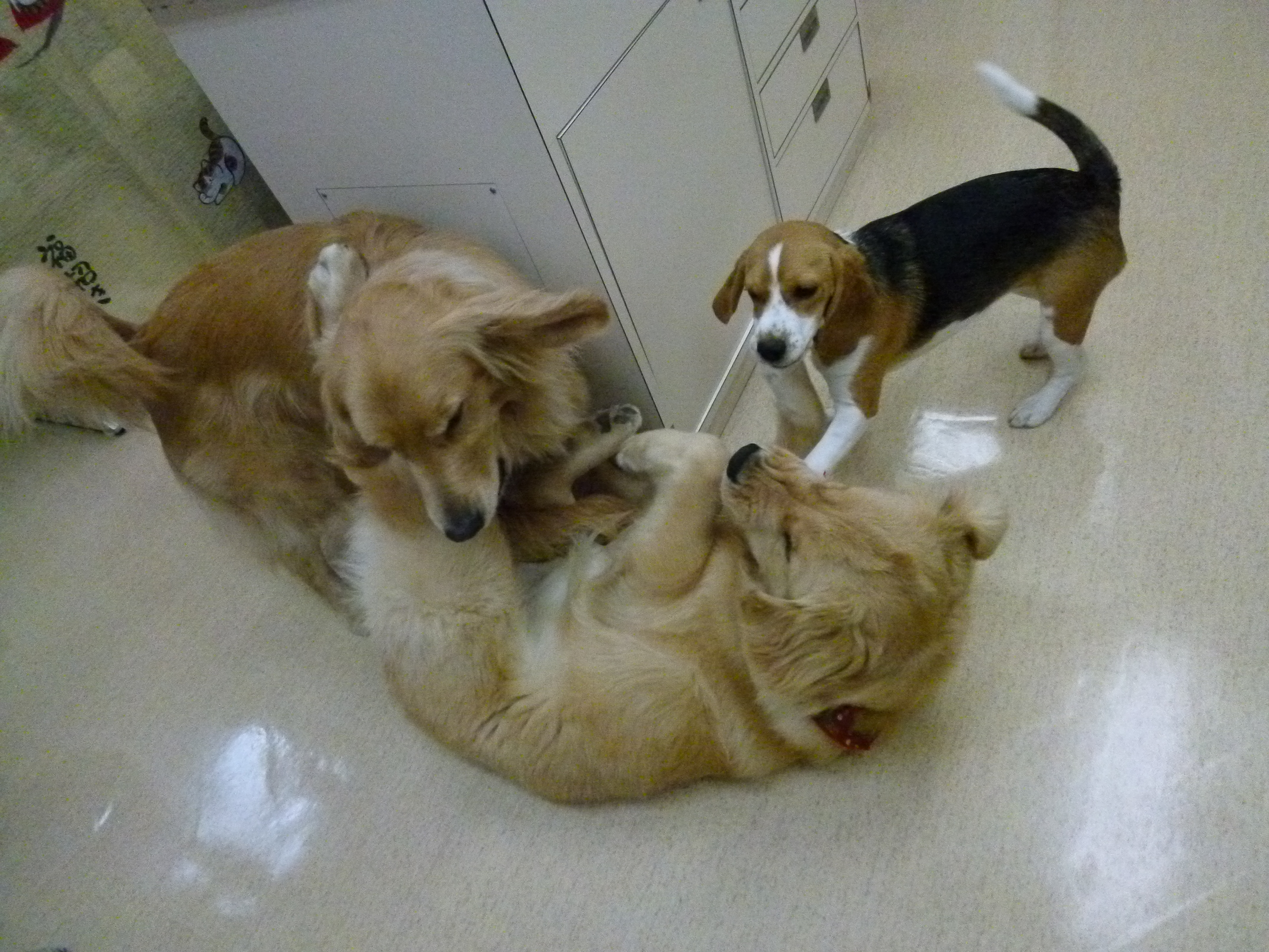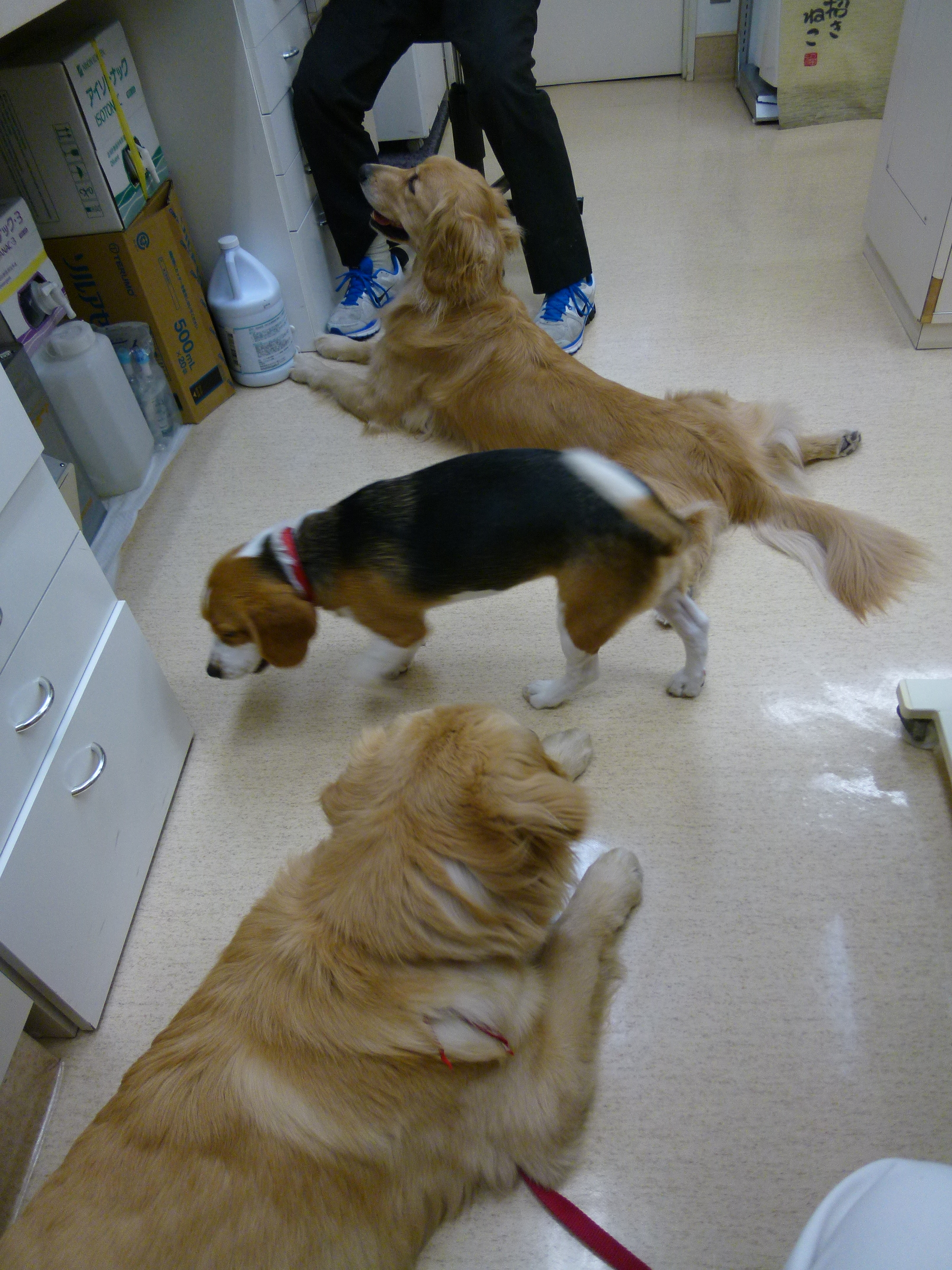 今日は ビーグルのハナちゃんと 伝次郎くんが来ています