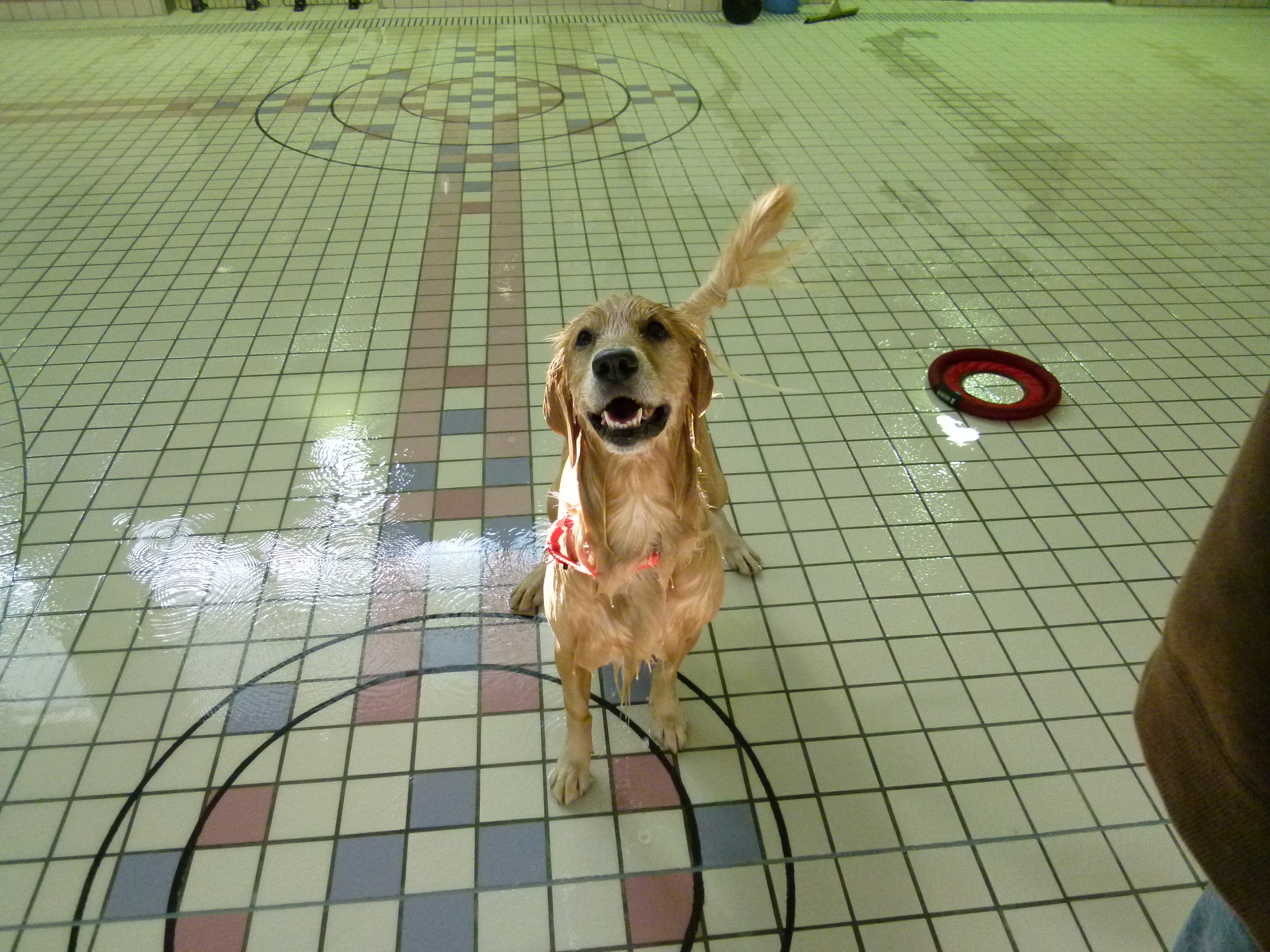 泳ぎ終わって、シャワーして 乾かして・・・ その間もプールに未練が残っている様子でした