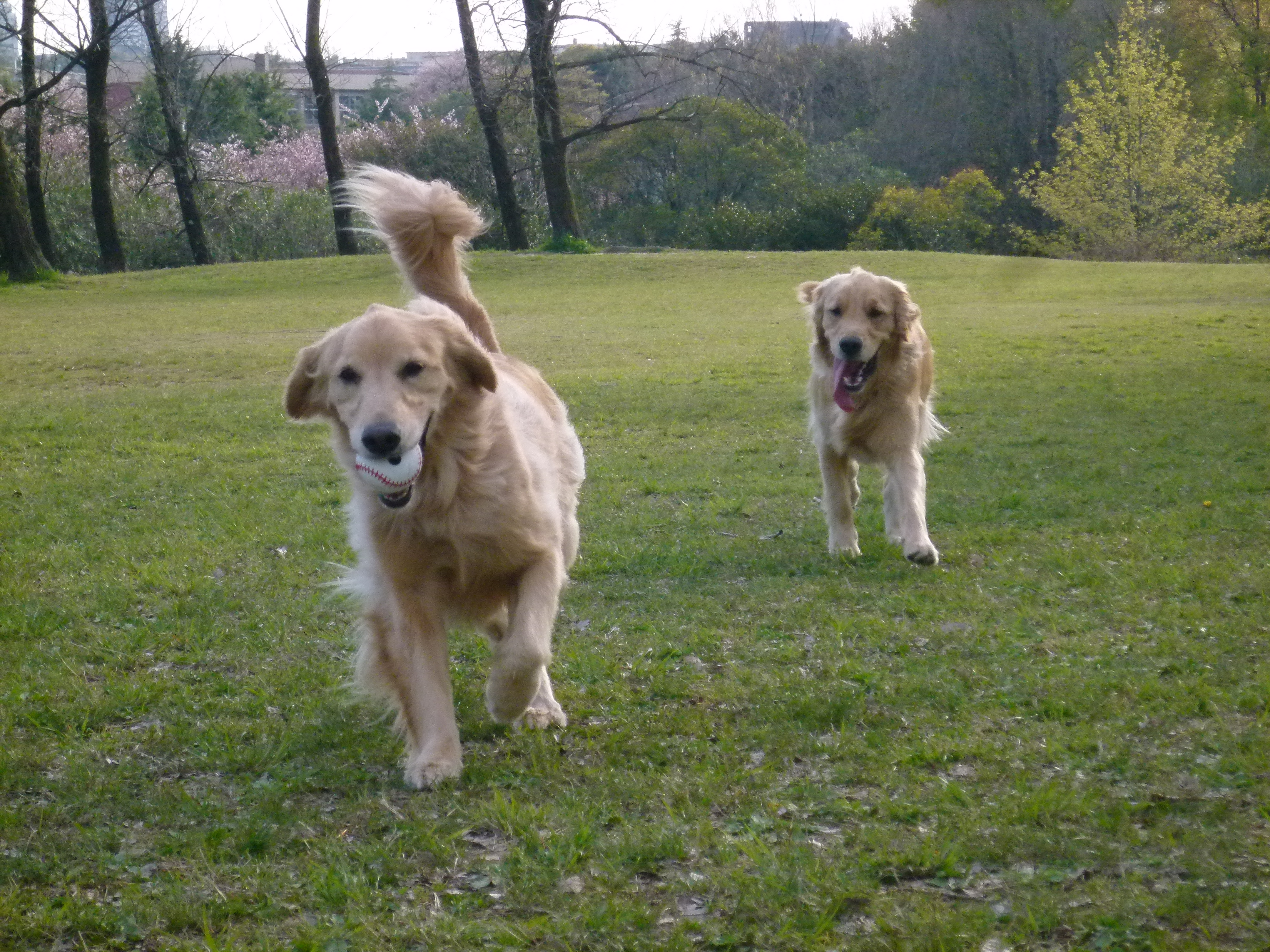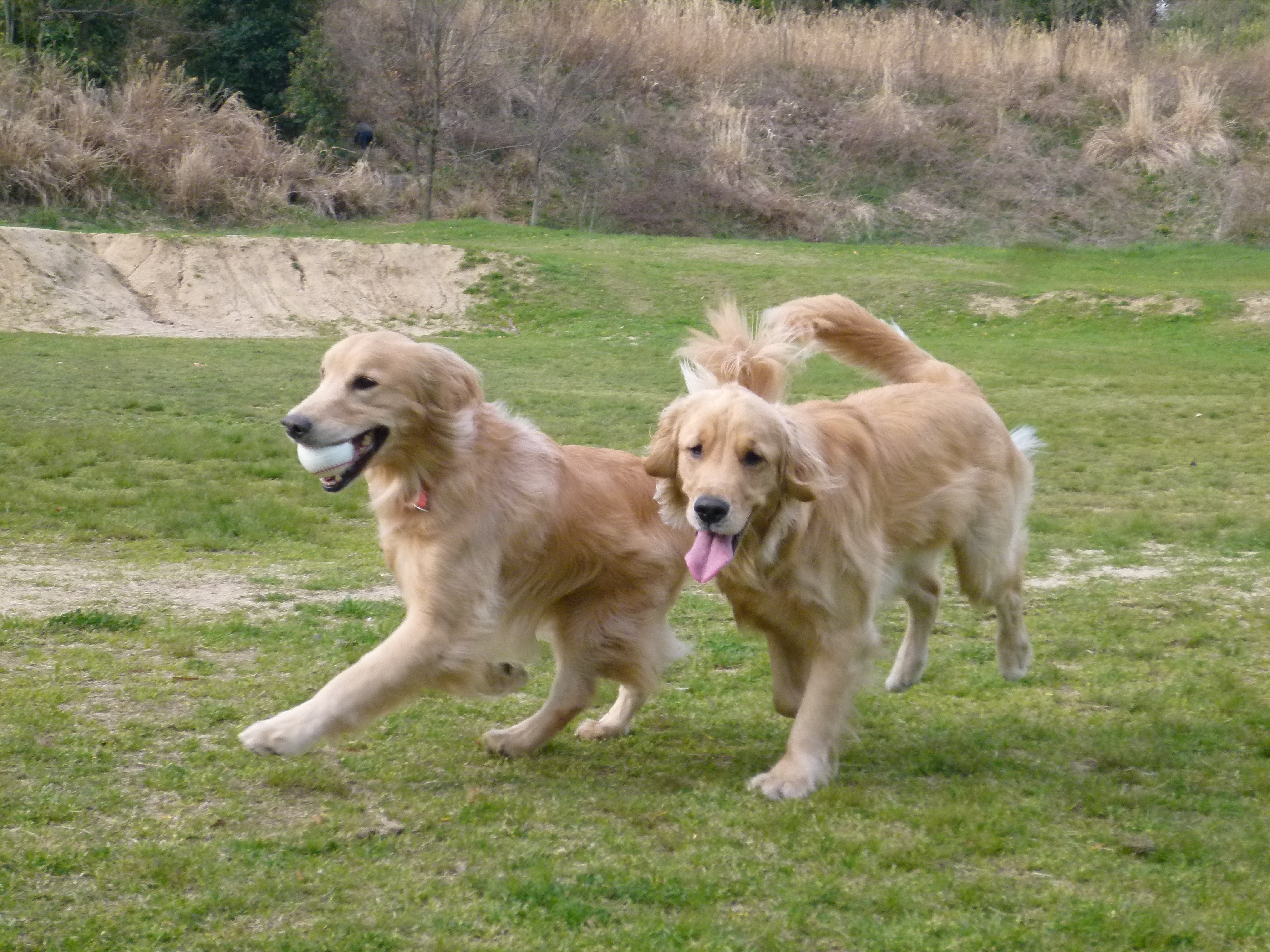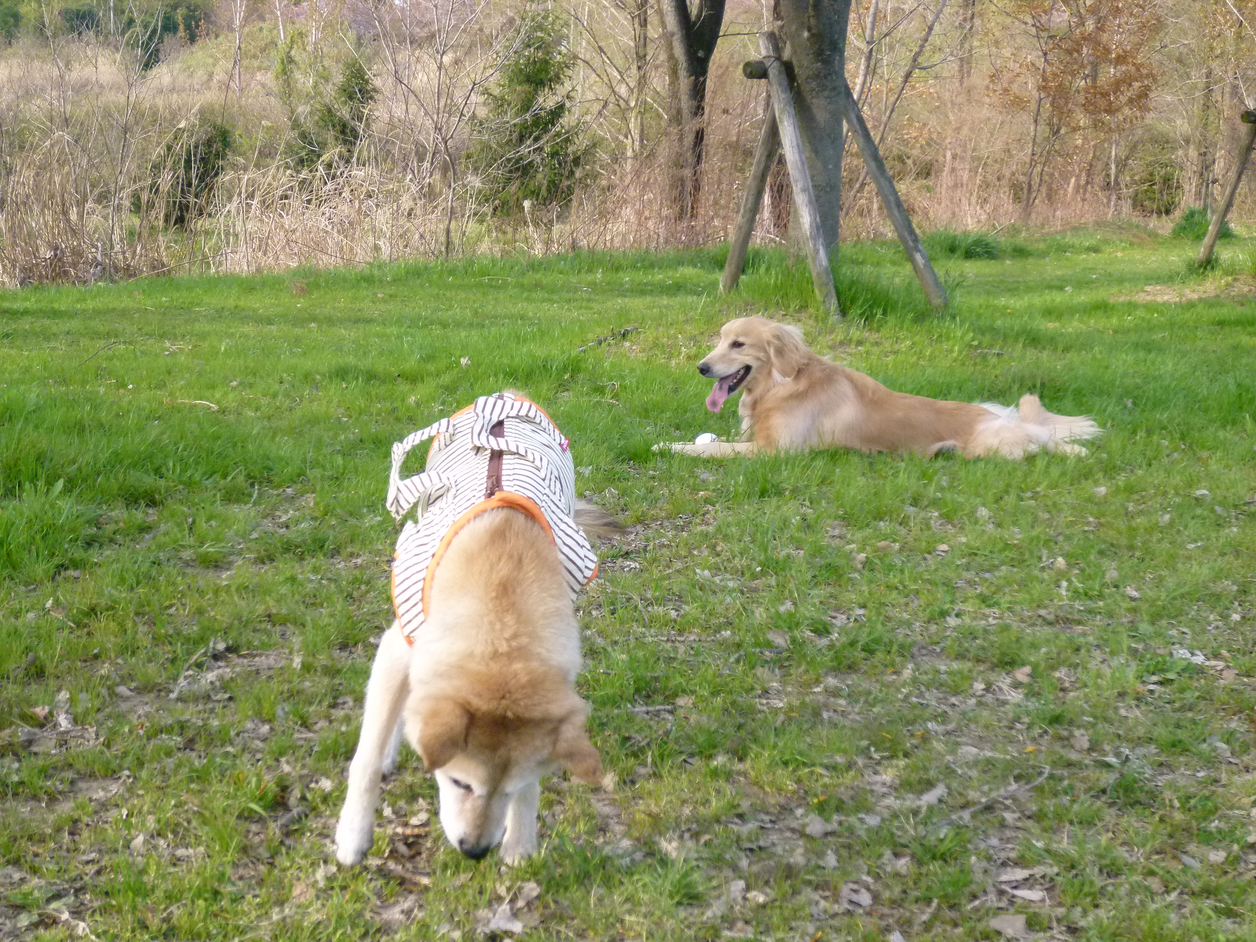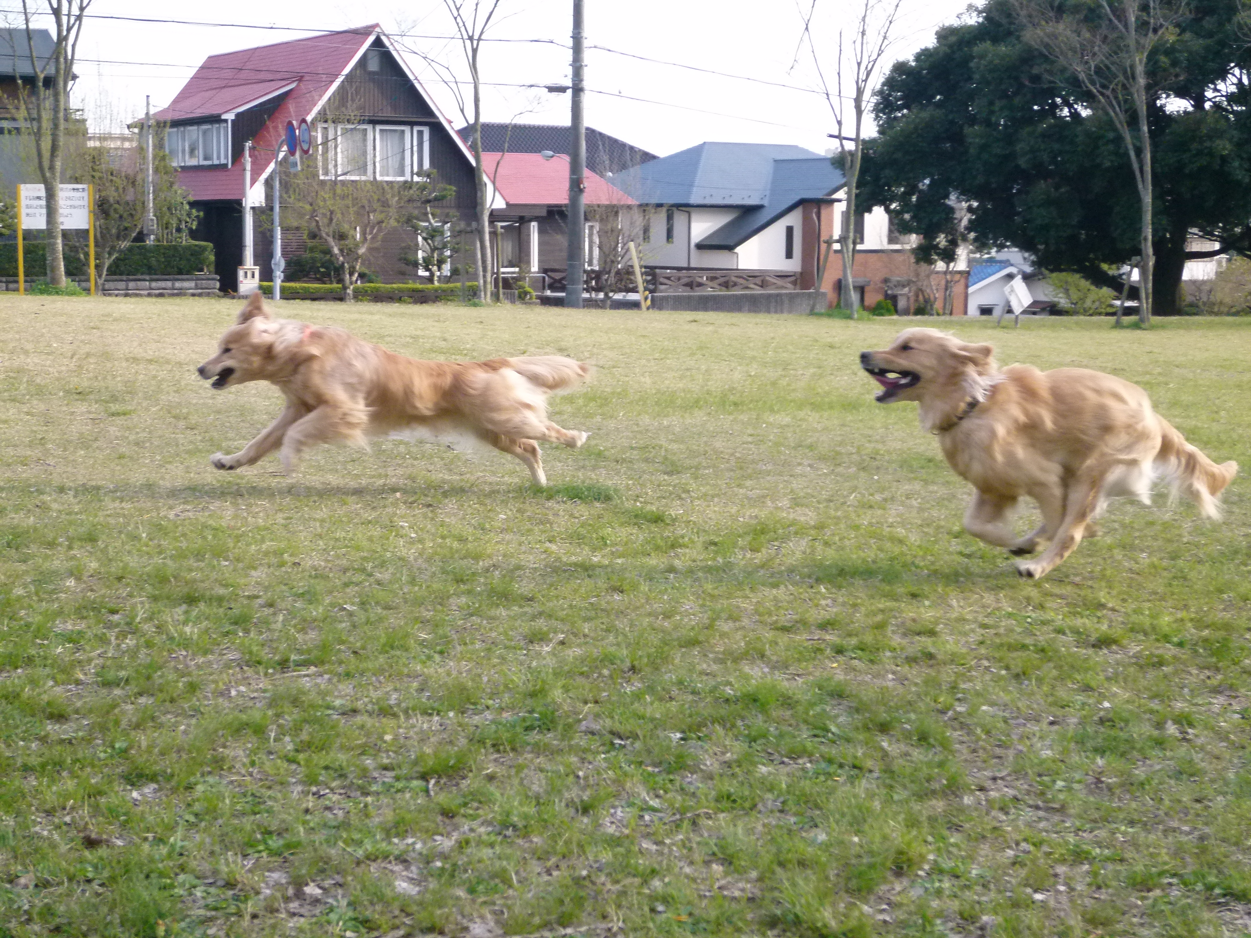 彩音と伝次郎くんは いつも通り 思いっきり走り回っていました