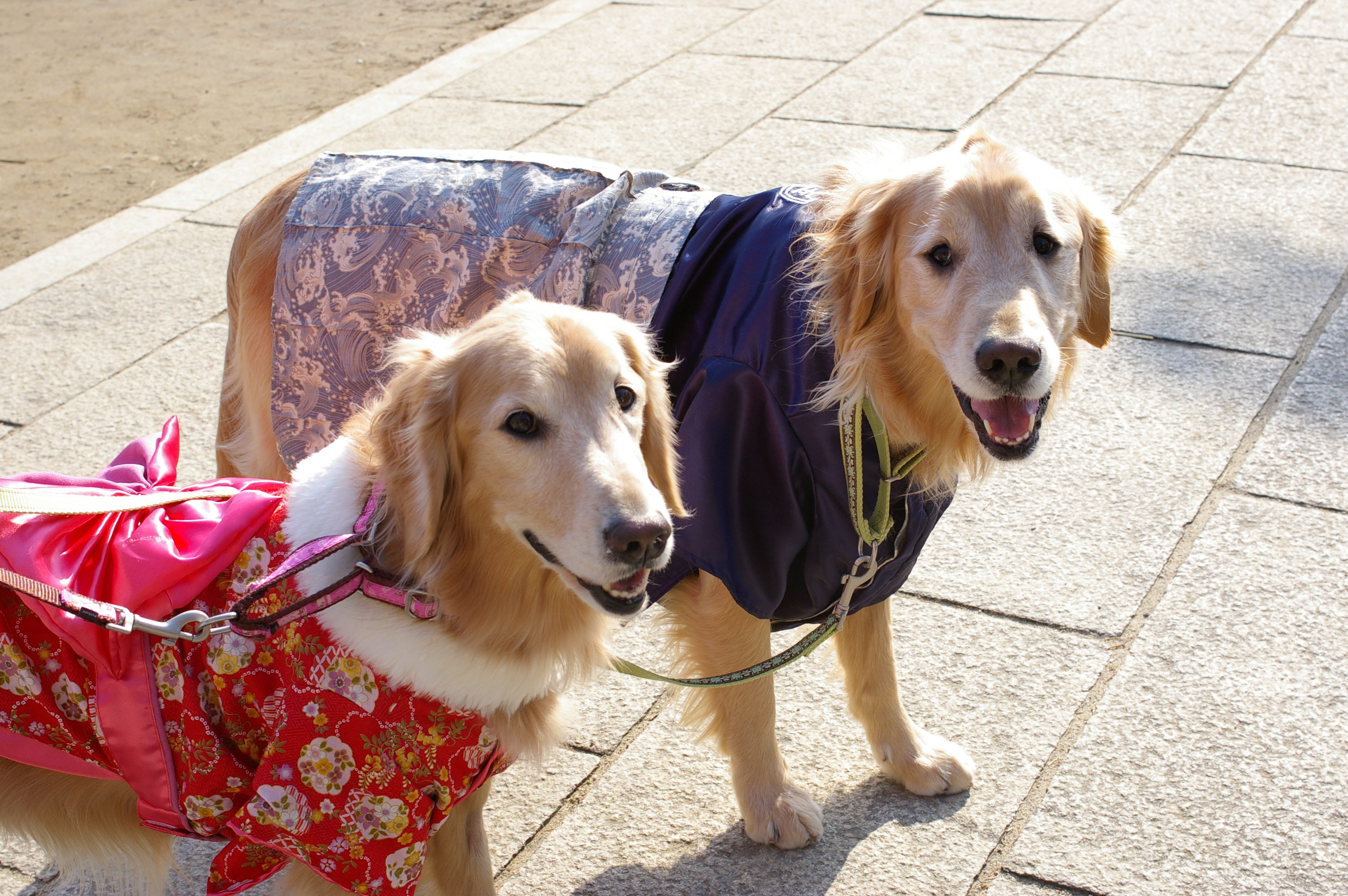 秋に行った「七五三」でいただいた着物を着て、お散歩しながら向かいました